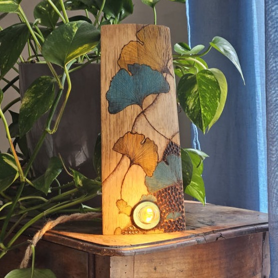 Elle s'adaptera bien dans votre salon avec son éclairage tamisé qui fait ressortir les couleurs des motifs Floral pyrogravés et peints sur cette jolie lampe.