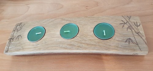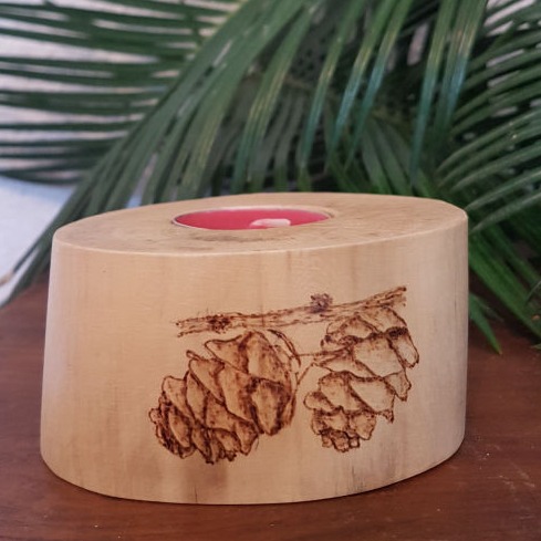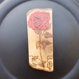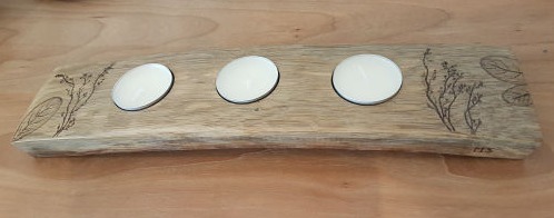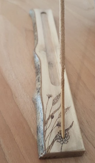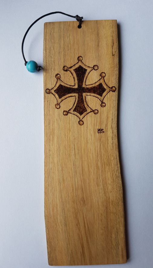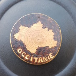 L'Olivier (bois nobles de notre belle région d'Occitanie), ainsi que d'autres bois sont utilisés, par exemple le Tilleul, le buis, pour pyrograver des décors ou des écrits.