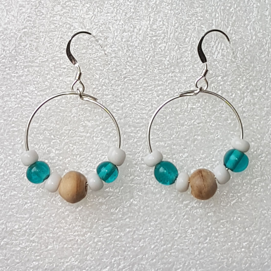 Perles en verre de 6 et 4 mm et bois d'olivier.