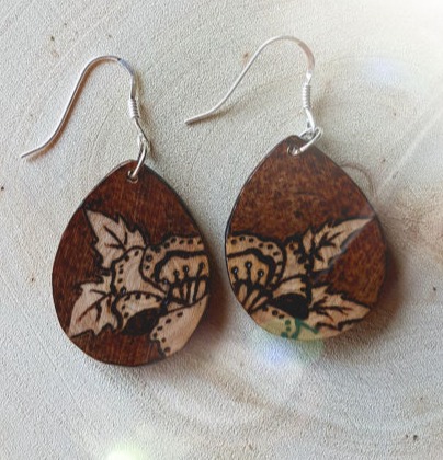 Boucles d'oreilles en bois d'olivier.