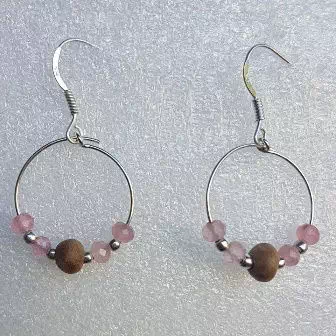Perles en Jade rose de 4 mm, argents 925 et bois d'olivier.