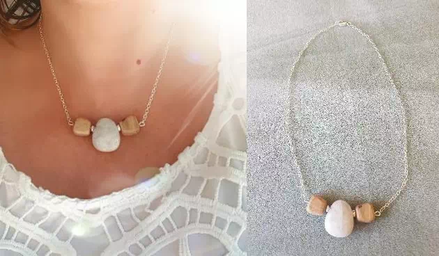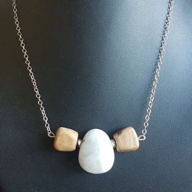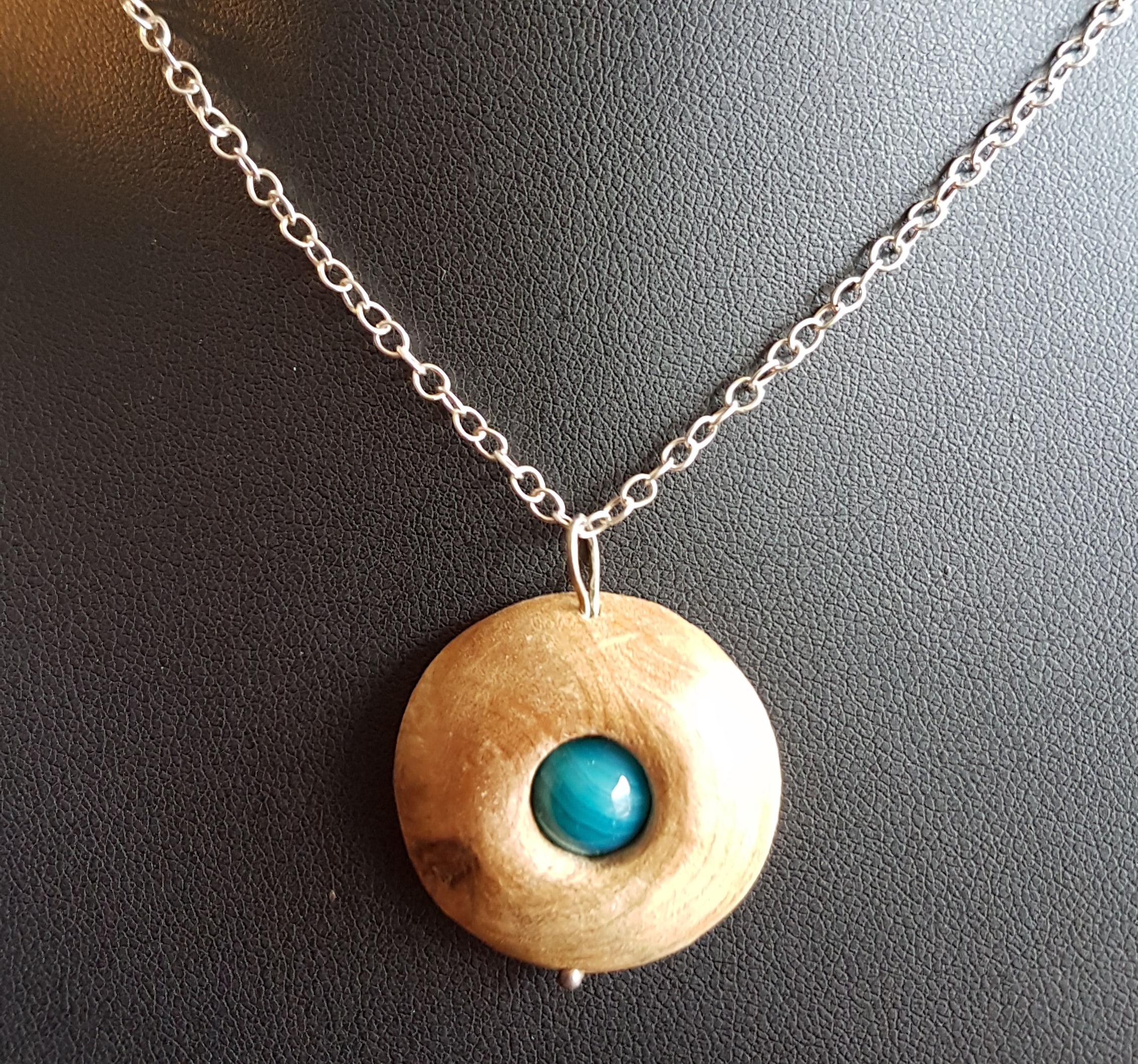 L'Olivier (bois nobles de notre belle région d'Occitanie), est utilisé avec des pierres naturelles pour créer un bijoux chic et authentique.