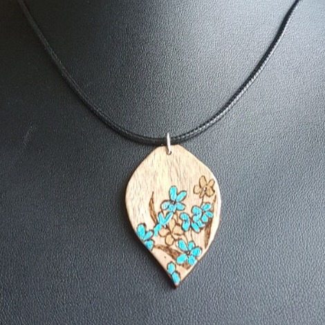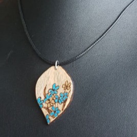 Pendentif en bois d'olivier monté sur un cordon en simili cuir.